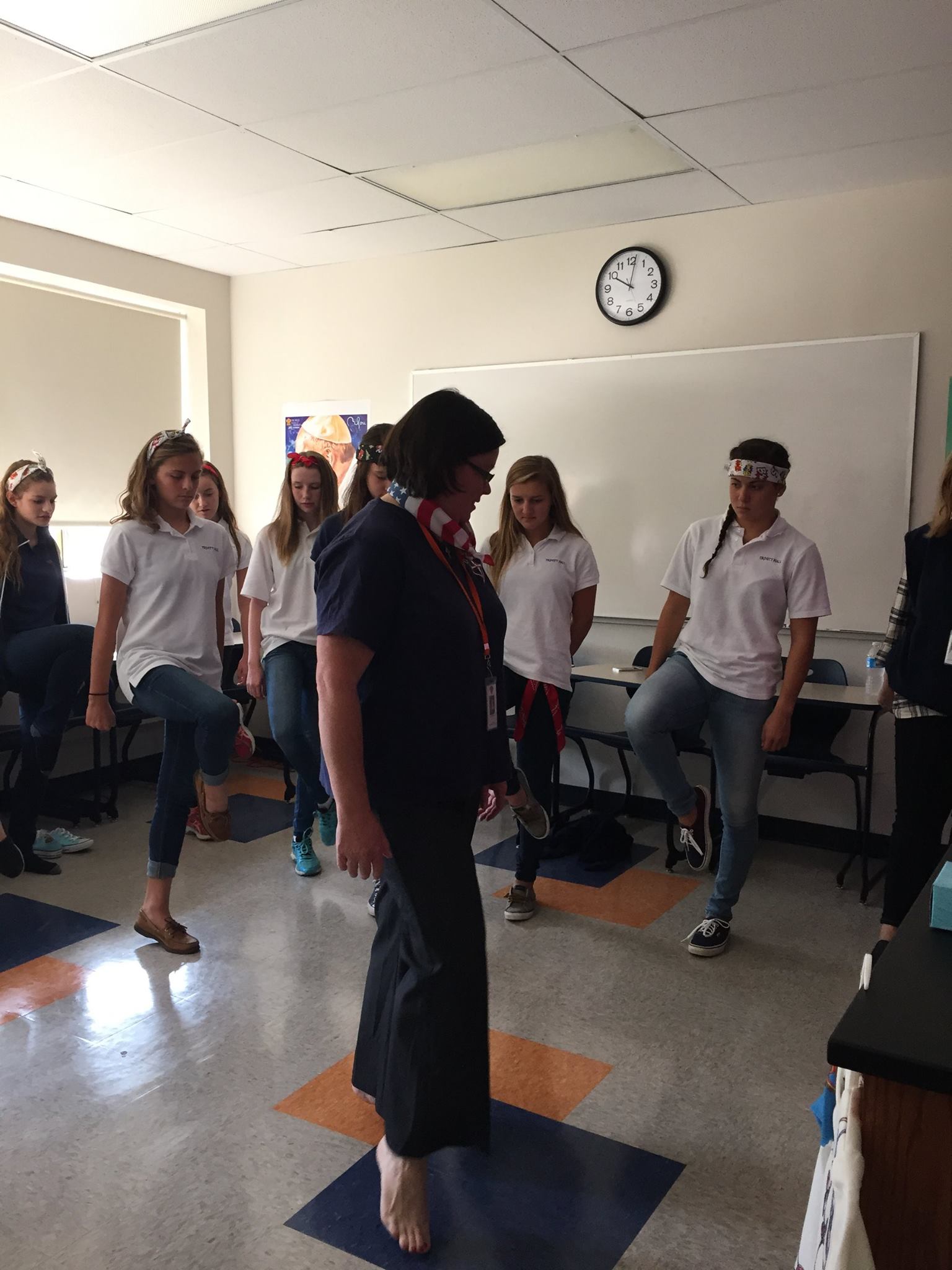 Humanities teacher Melissa Whelan teaches students the art of Irish Dancing at the school’s International Day of the Girl celebration on Oct. 9. Photo by Theresa Kiernan.