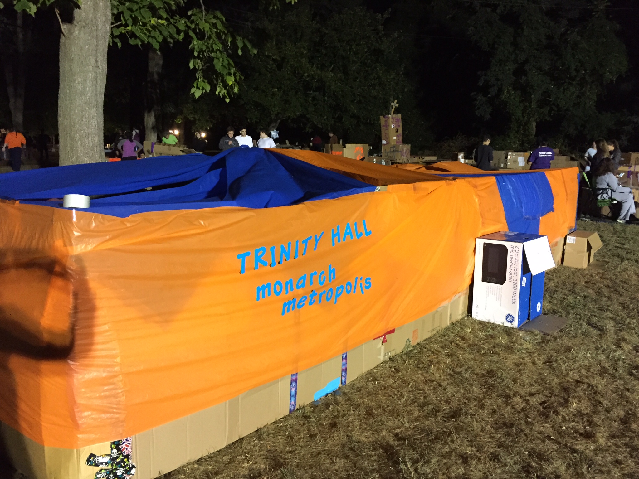 The “Trinity Hall Monarch Metropolis” was constructed by participating students and faculty to serve as their overnight shelter at Cardboard Box City in Tinton Falls on Sept. 25. Photo by Lauren Pappa