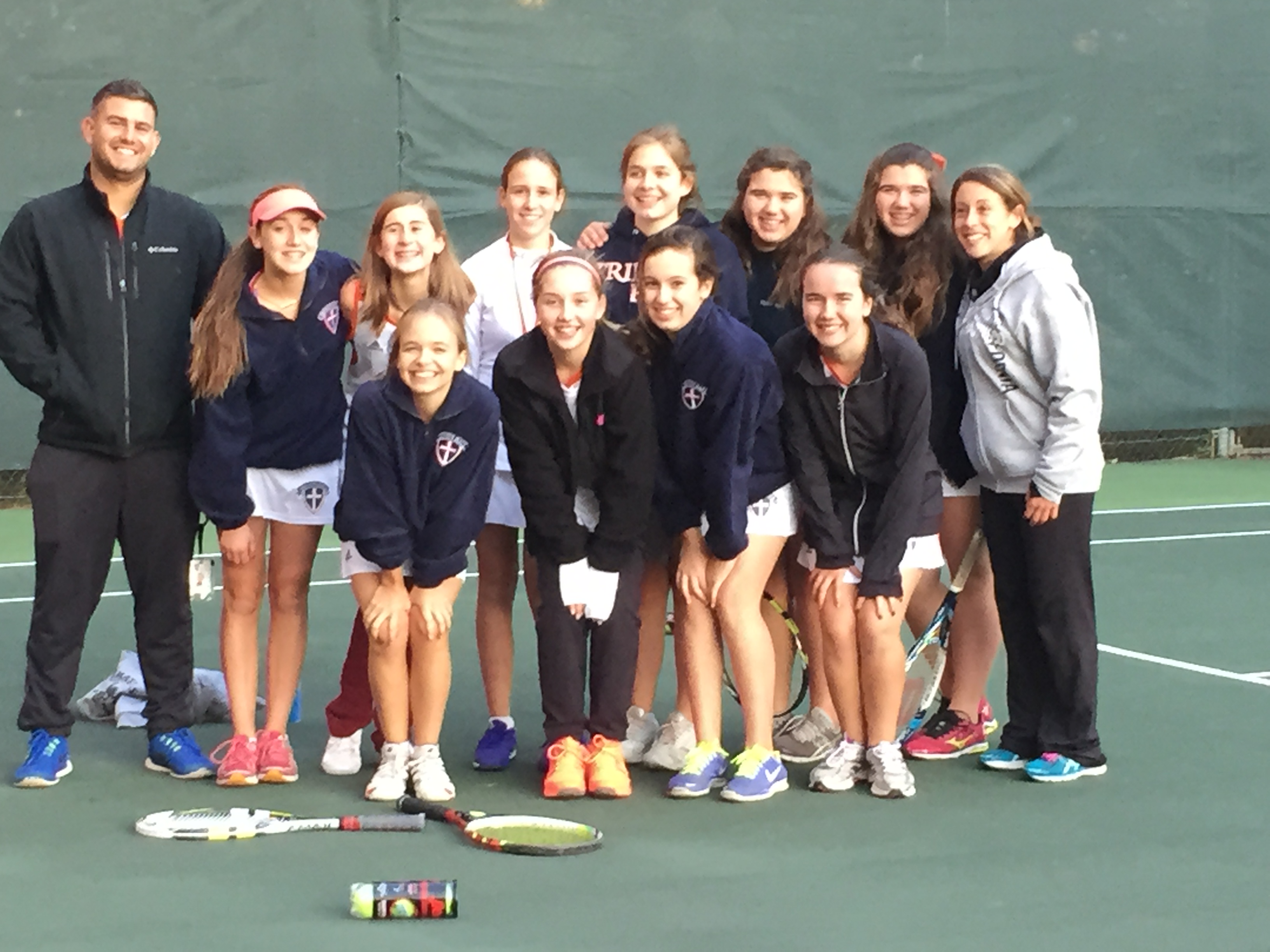 The girls varsity tennis team enjoyed its first varsity win against Brick Memorial High School on Oct. 14. Photo courtesy of Trinity Hall tennis team