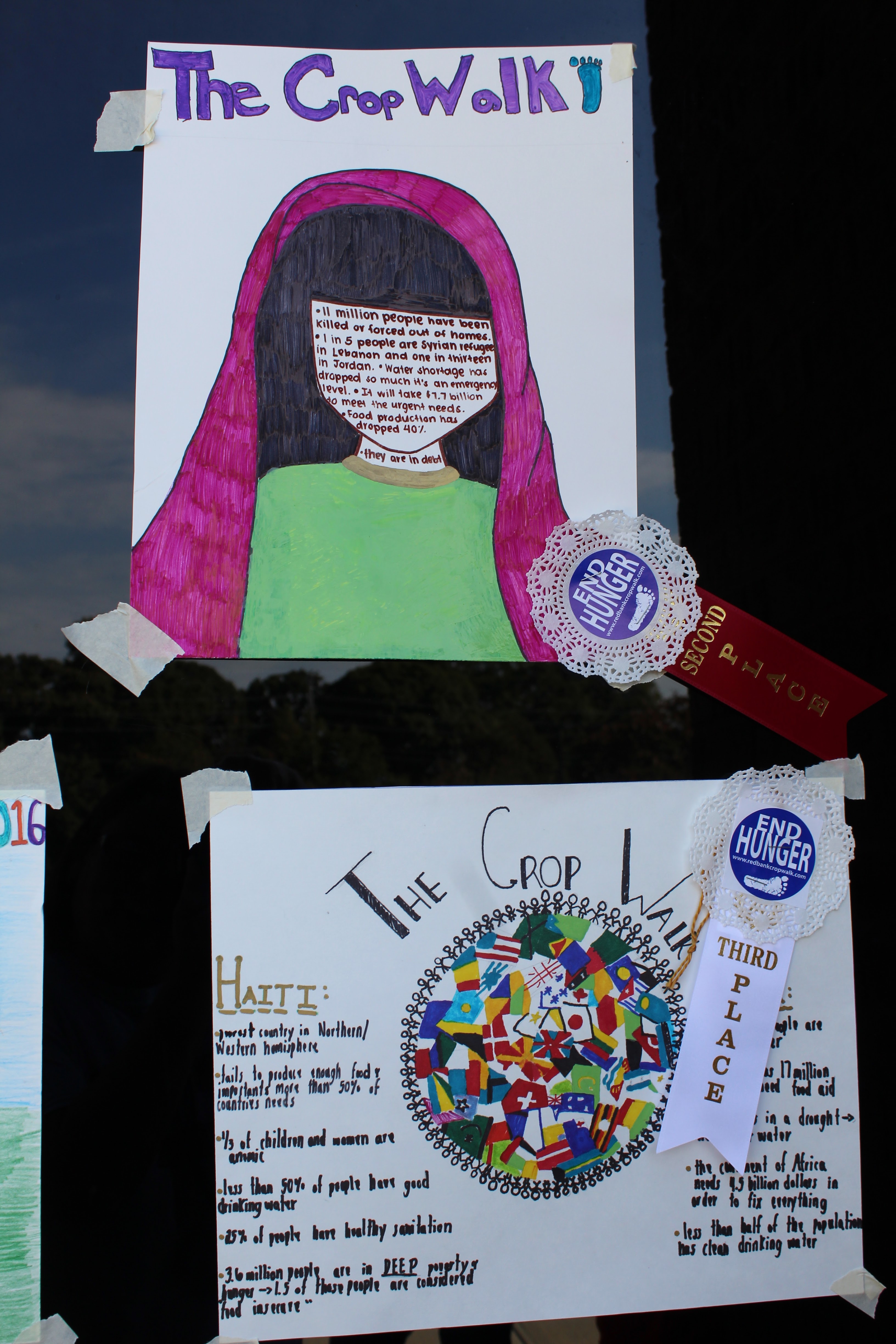Freshmen Hope Caucino, Kiley Cizin, Mara Galvin and Sophia Hegel took second place in the poster contest for the Red Bank Crop Walk, while freshmen Olivia Almeida, Emma McEvoy, and Hailey Scarantino took home the third place award. Photo by Melissa Whelan