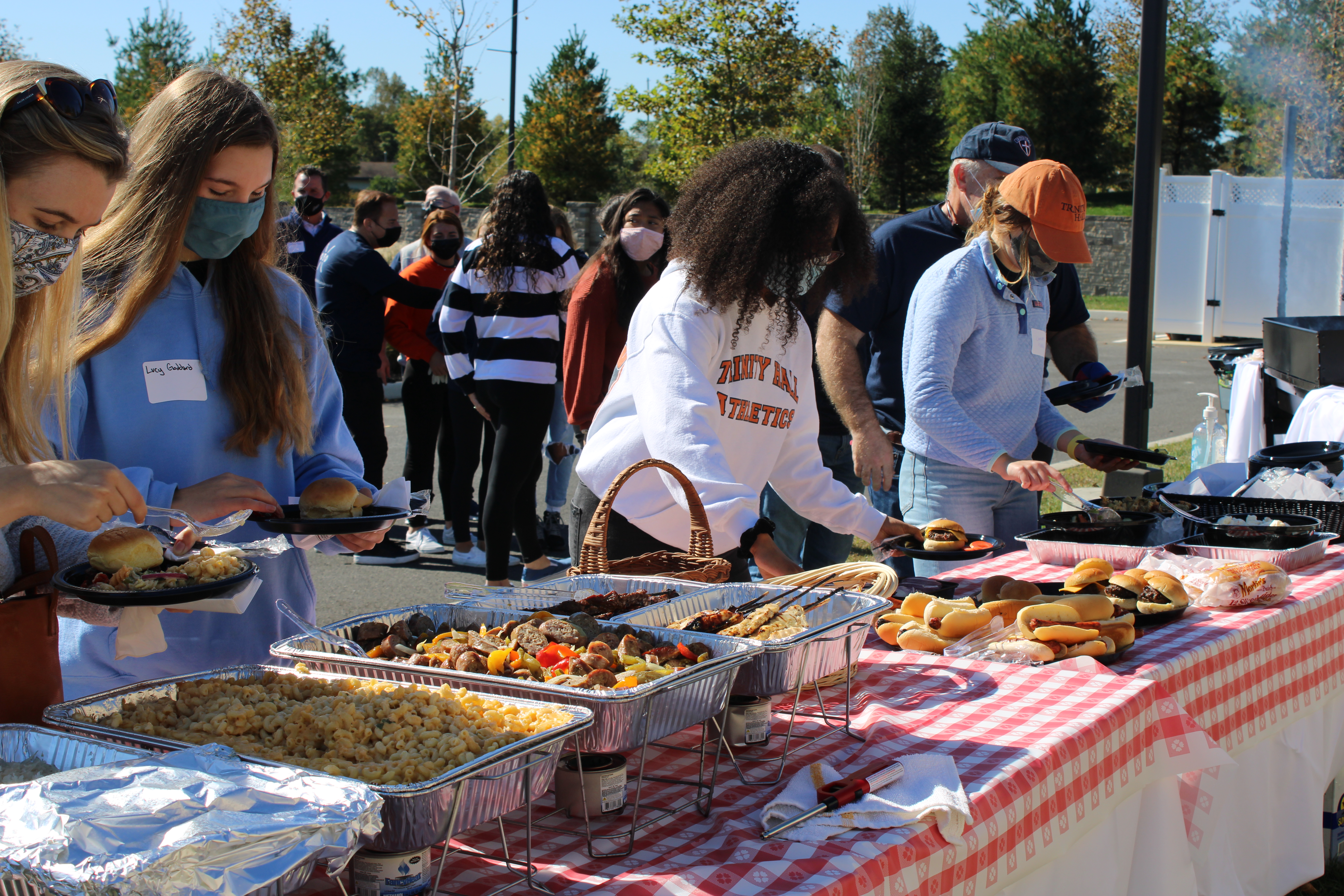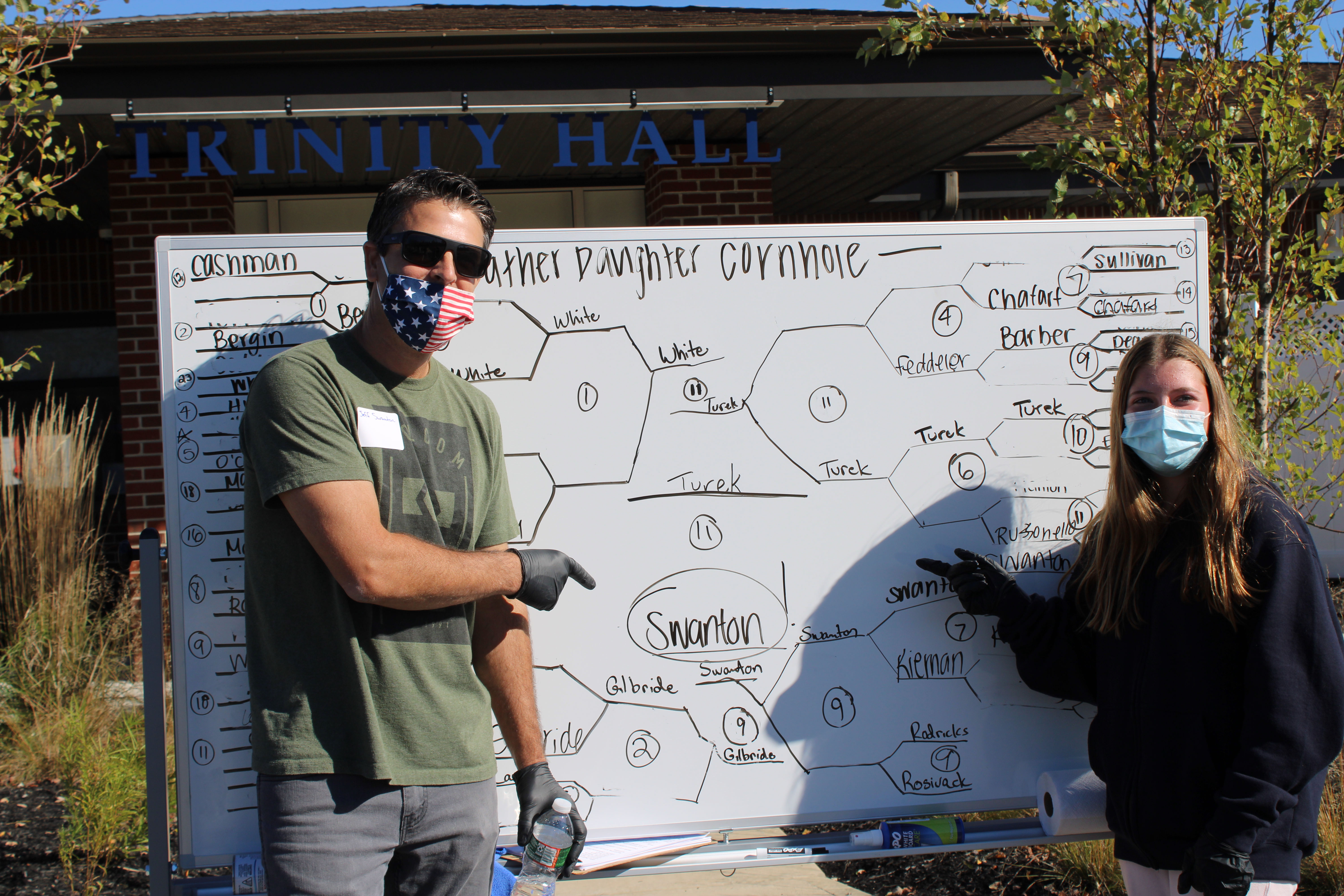 Fathers and daughters of Trinity Hall came together on Sept. 17 to enjoy some friendly cornhole competition. Hosted by the Fathers’ Committee and organized by the Athletics Council, the event was the first of its kind, a project devised by the committee to engage dad-daughter duos while keeping safe in the midst of the COVID-19 pandemic.