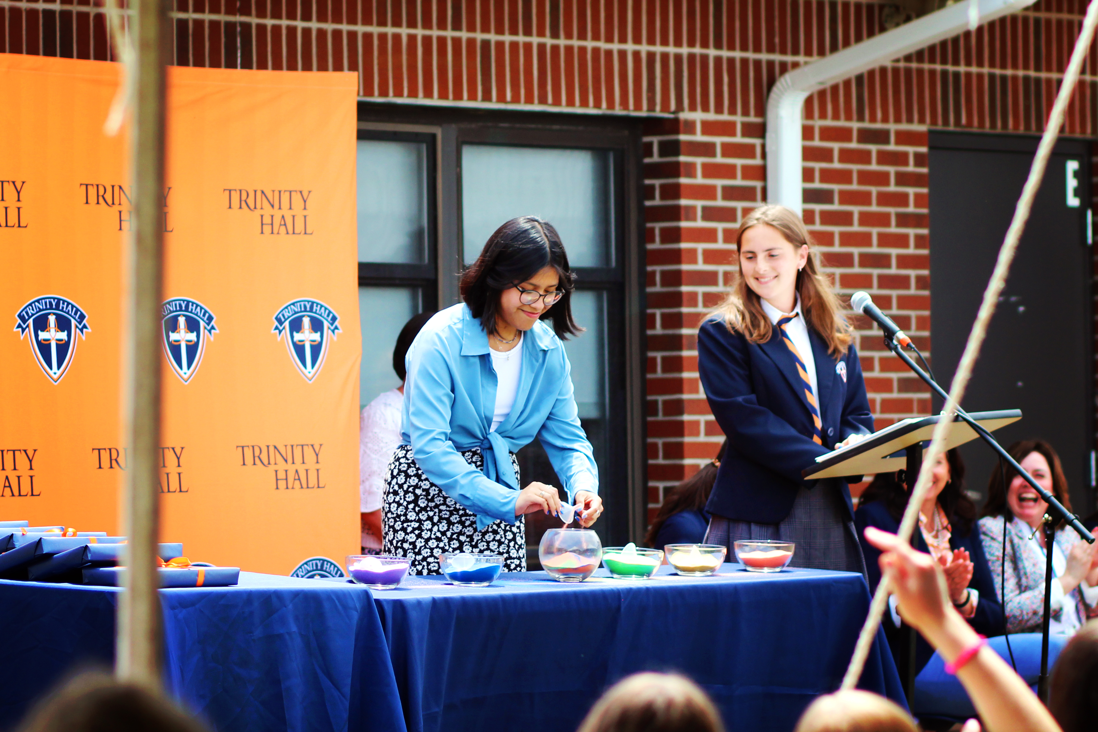 Eileen Bergin will serve alongside Almeida as the student body vice president. Although this is Bergin’s first year on student council, she is a promising candidate because she has so many great and innovative ideas. Bergin is an active member of the Trinity Hall community. She participates in cross country, swim, spring track, various clubs, and leadership opportunities. Bergin is known for having a great amount of spirit and positivity, which she exhibits to her classmates and teammates.