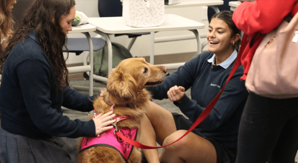 In order to further relieve the tension students tend to carry with them throughout the day, therapy dogs made an appearance at Trinity Hall. The dogs were a joyous presence for both students and faculty. In addition, students met with their Advisory during lunch and decorated cupcakes with their Big/Little Sisters. Students decorated fun cupcakes with a chance to compete in a friendly competition, providing an opportunity to further bond with their Big and Little Sisters. To end LOVE Week, students had no school on Friday. Students enjoyed a relaxing four day weekend, returning to school on Tuesday, February 20.