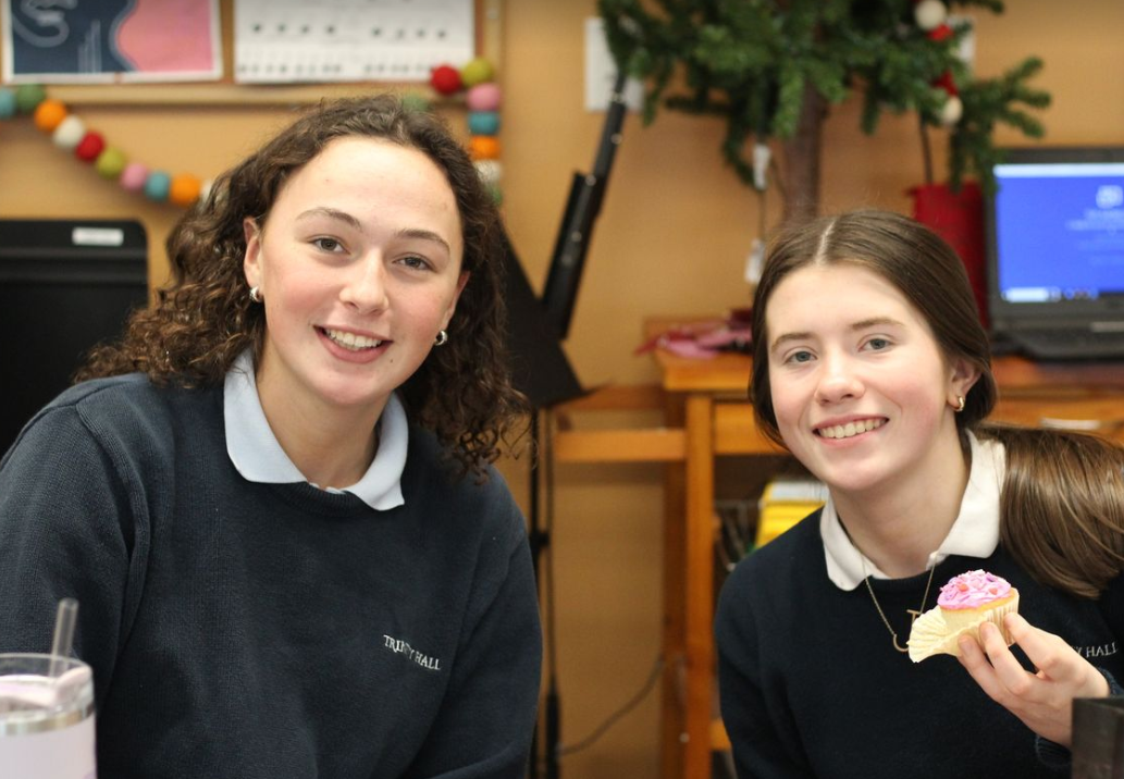 LOVE Week continued throughout the week of Monday, February 12 when students celebrated their love of service. The freshmen class brought in sweets for the monthly bake sale. The Class of 2027 chose to donate the bake sale’s proceeds to “Liv like a Unicorn,” a foundation that raises awareness to help fund advancements in pediatric brain and spinal cord tumor research. The group successfully raised money for a great cause while also providing the Trinity Hall community with a sweet treat.