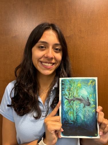 Garrison illustrated a shark as her entry into the contest, adhering to the theme while also expressing her interests. She stated, “I wanted to create something that embodied the summer feeling which was also the theme of the bulletin board. My inspiration for what I drew stemmed from my love for sharks and other ocean animals.”